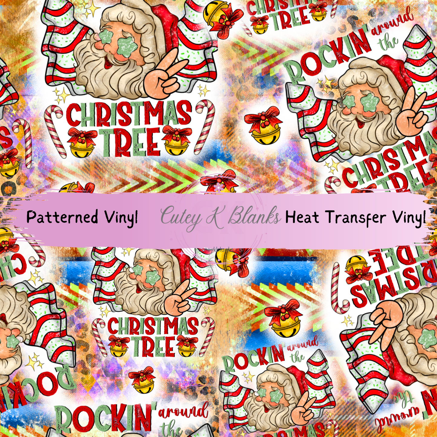 Patterned Printed Vinyl and Heat Transfer (HTV) Sheets - Santa Christmas Tree - PV100231