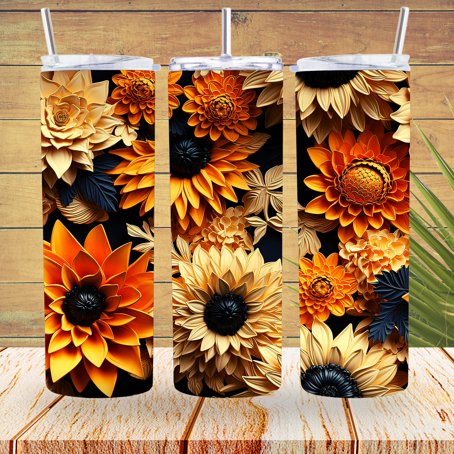 Ready to Use - Tumbler Wraps - Vinyl or Sublimation - 3D Flowers - TW100756