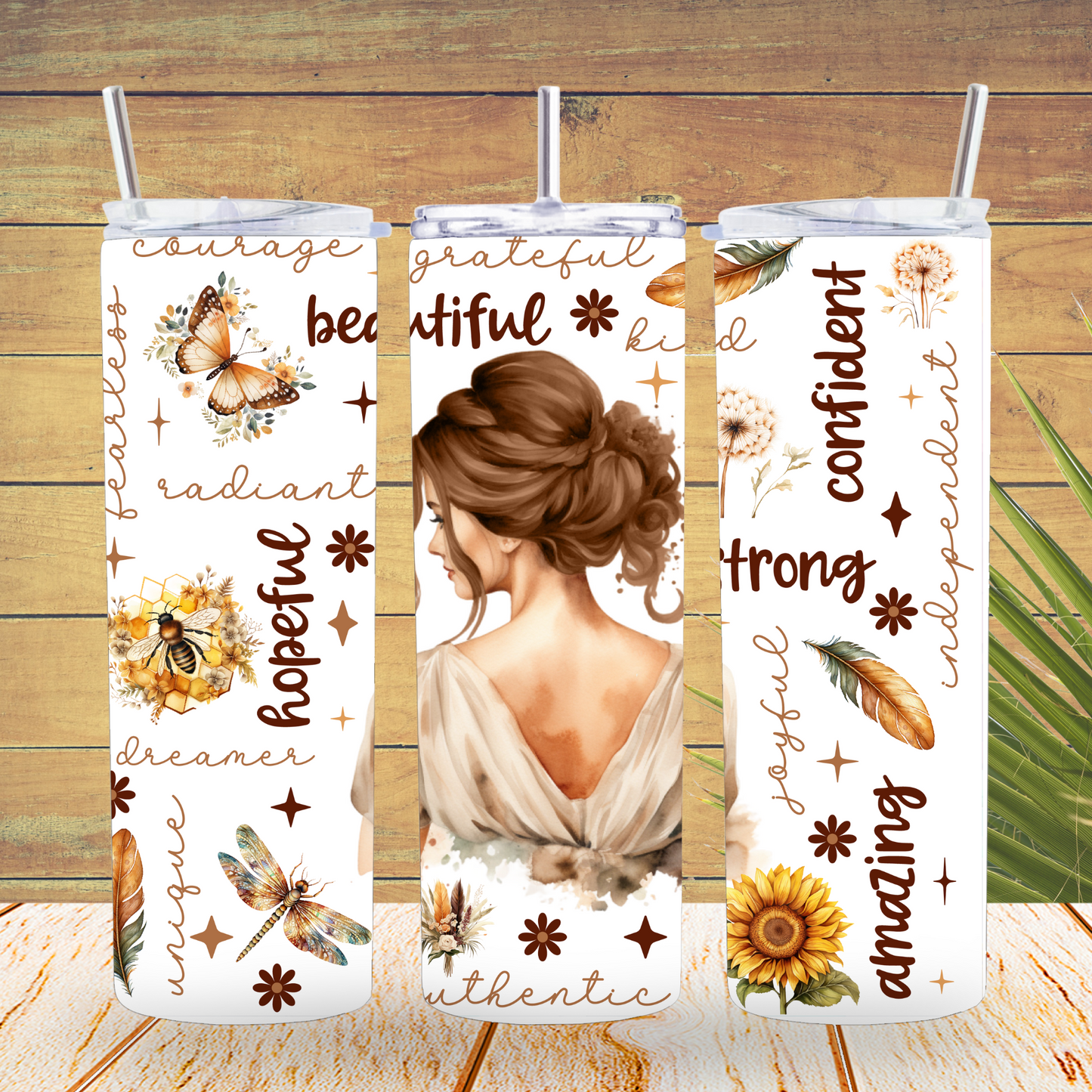 Ready to Use - Tumbler Wraps - Vinyl or Sublimation - Beautiful, Strong Lady - TW100708