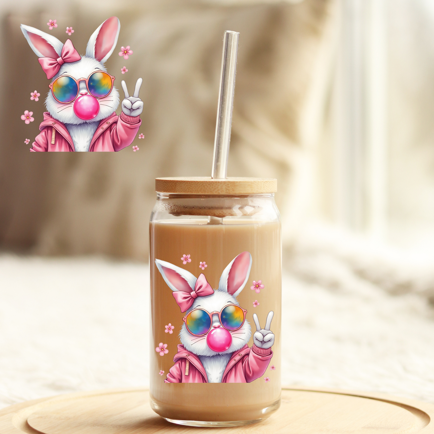 Tumbler Cup Wrap 16oz UV DTF Crystal Sticker: Bunny UVDTF100323