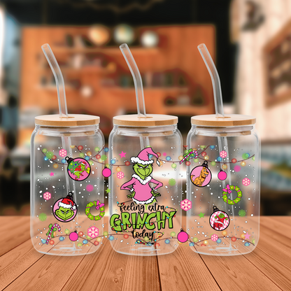 UV DTF , Ready to Use Sticker, Pink Grinchy UVDTF100193