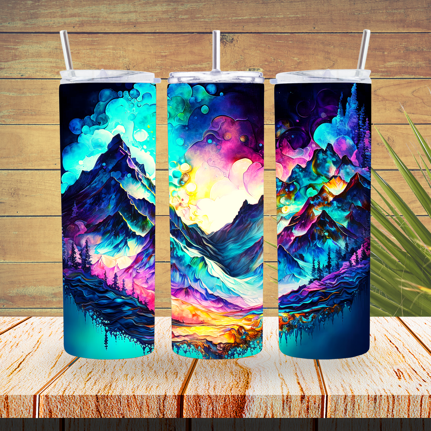 Ready to Use - Sublimation or Vinyl Tumbler Wraps - Alcohol Ink Mountains - TW100449