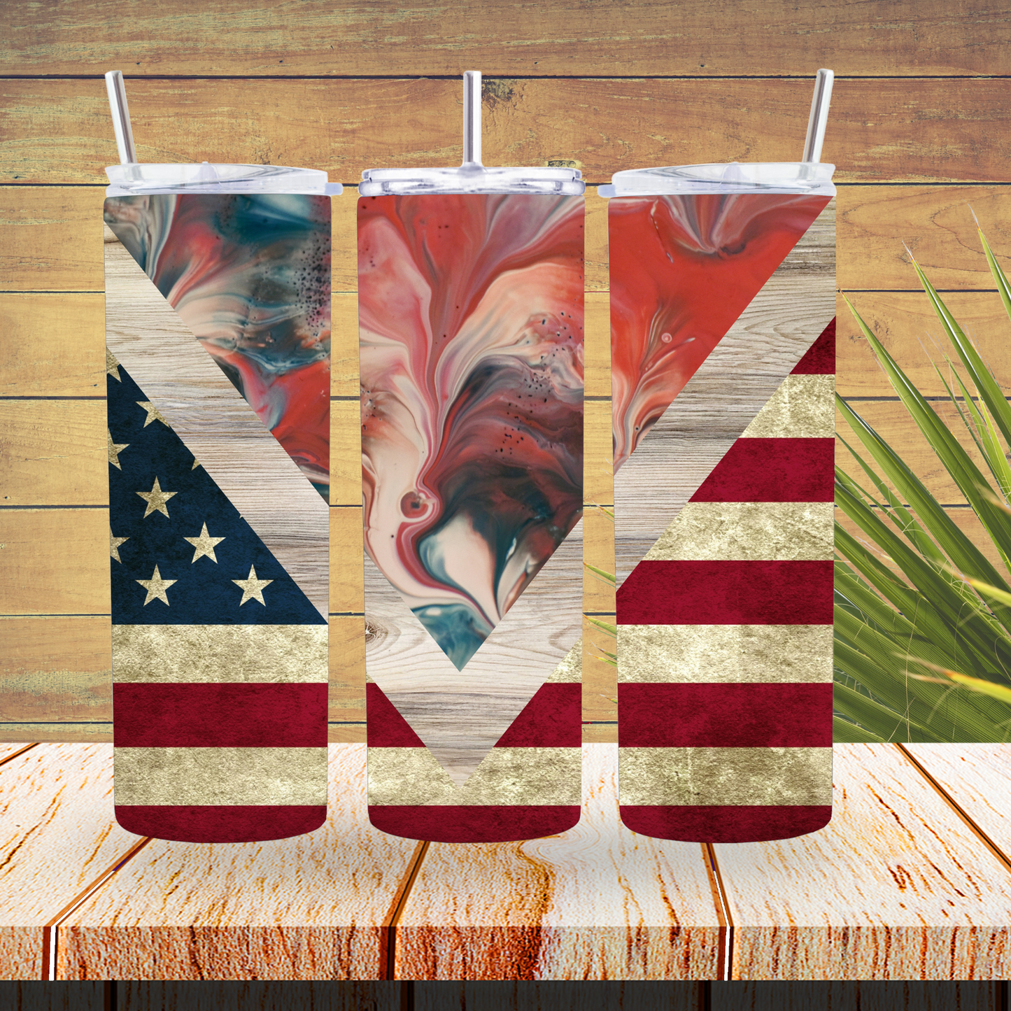 Ready to Use - Sublimation or Vinyl Tumbler Wraps - American V Split - TW100376